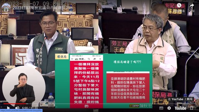 味飄到下營,居民難耐。圖/擷取台南市議會直播畫面