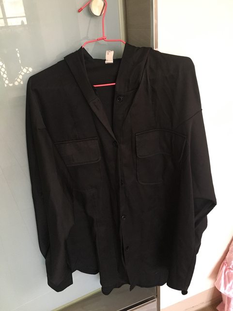 3.黑色寬版連帽襯衫式長袖