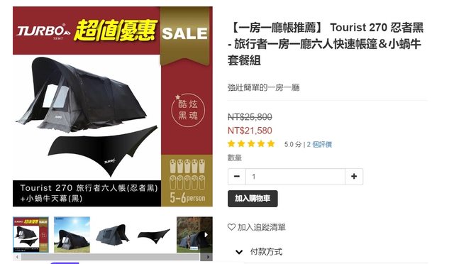 1. 售turbo tent tourist 270 含天幕