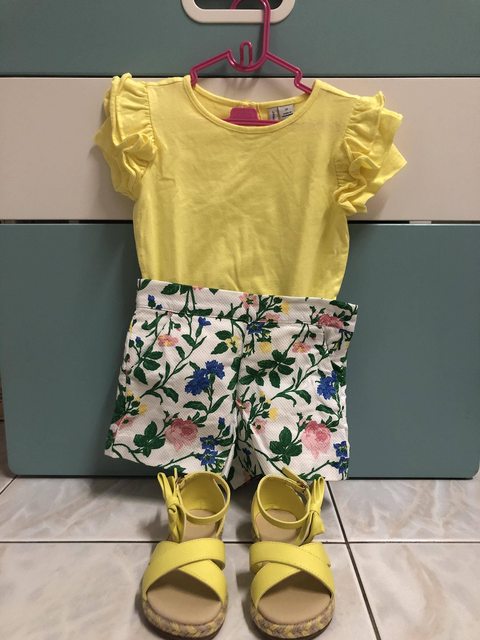 Janie and Jack 黃色花花成套衣褲鞋 尺寸2T 下水洗過,沒穿過 售1400(買之前就先搭配好,可單買,一件600)