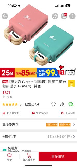 標題[交易] 義大利Giaretti 熱壓三明治鬆餅機