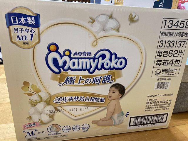 1. 滿意白金尿布黏貼式M一箱$1400