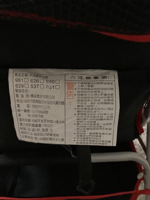 釋采實業有限公司,手推嬰兒車,可調整椅背傾斜角度,可折疊,遮陽棚可收合,底下有
