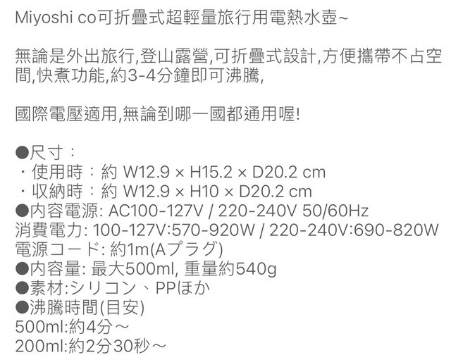 交易物品:日本miyoshi 可折疊電熱水壺