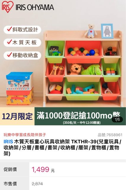 1. IRIS童心玩具收納架 (全新未拆封) $1000
