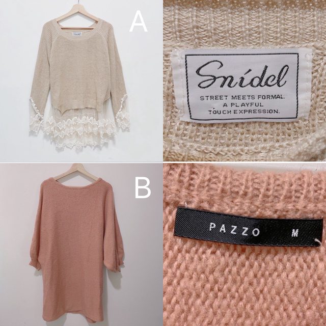 A. 日貨snidel奶杏色針織蕾絲上衣:150元