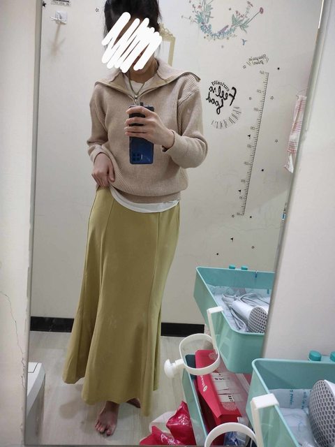 4.日牌全新 酪梨牛奶色魚尾裙子m 400$
