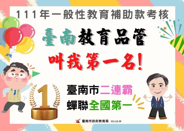 標題[新聞] 南市優質教育頻拿滿分 中央一般性教育補