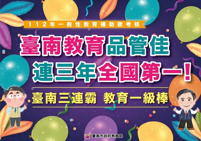 南市優質教育再獲肯定!112年中央一般性教育補助款考核 連三年全國第一
