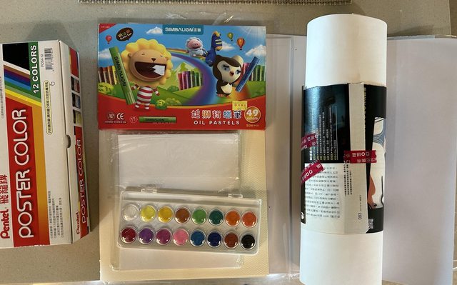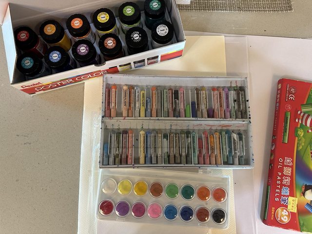 廣告顏料一盒(只用過一次)、粉蠟筆(使用頻繁,見照片)