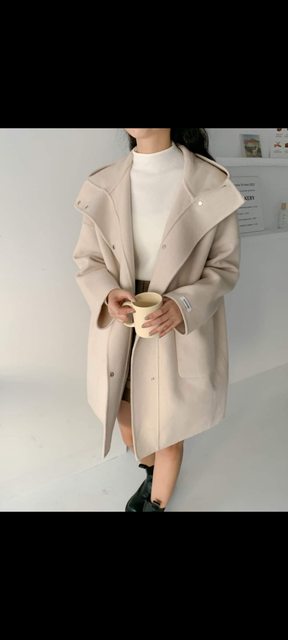 3.韓 雙面100%羊毛寬鬆連帽軟