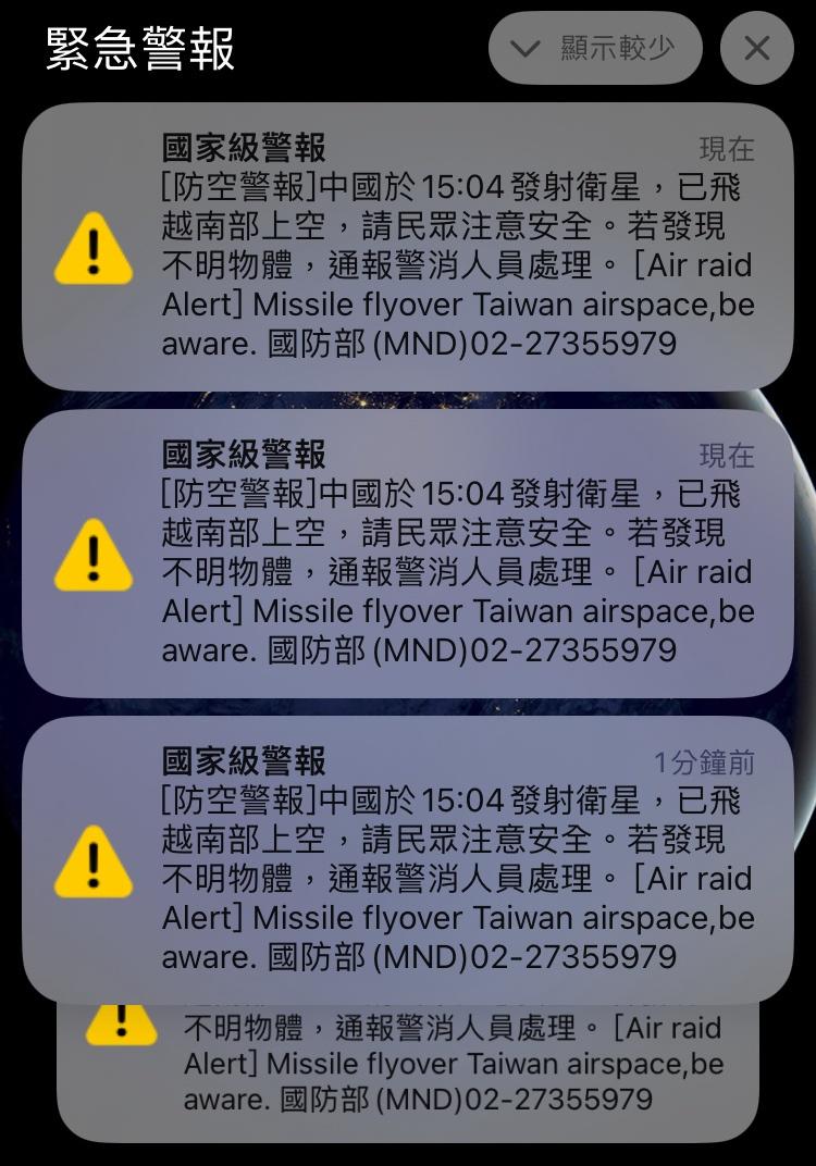 → nell0718: 個衛星是會在南部爆炸嗎?怎麼這麼慎重連發兩次警 01/09 15:23
