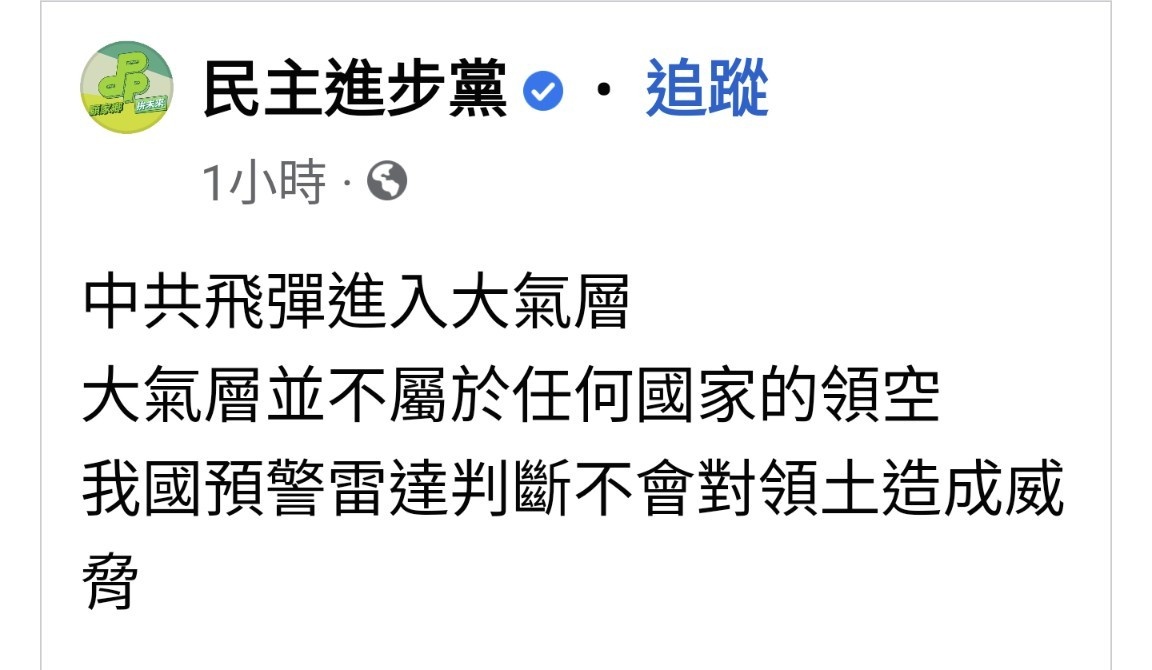 推 shiaobai: 前年飛彈真飛過上空都不敢講了 01/09 15:33