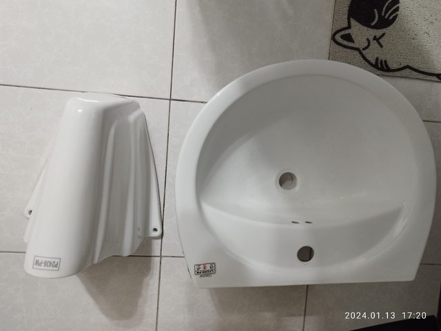 交易物品/金額/說明:前屋主留下的半腳洗臉盆一組,有大概擦拭過。臉盆裡有微黃色澤