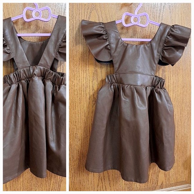 3.咖啡色飛袖背心皮裙:全新無吊牌,牌標90,約85~95cm可穿,裙子部分有內裡,售80