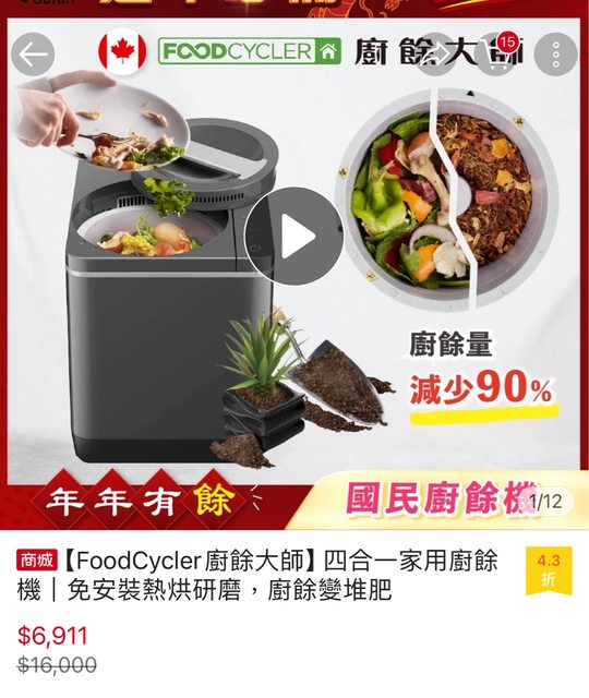 2.廚餘機:800元(需要換濾網)可用舊換新方案(售出