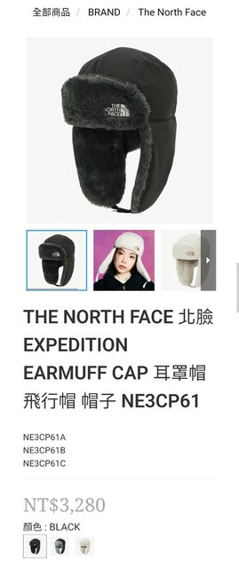 交易物品/金額/說明: 韓國版the north face 保暖飛行帽 黑色L號