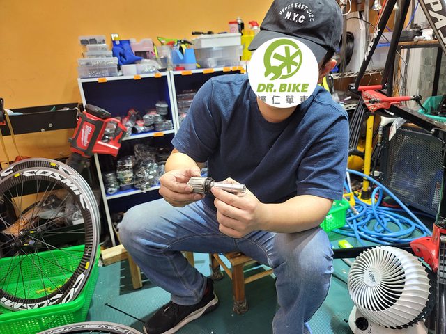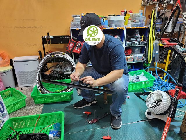 老闆裝好輪組後也順便檢查調整一下全車