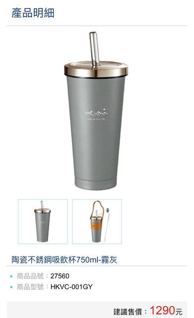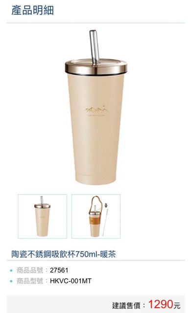 標題[交易] 售全新妙管家陶瓷不鏽鋼吸飲杯750ml