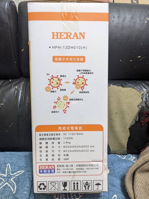 物品:HERAN禾聯陶瓷式電暖器HPH-13DH010(H)