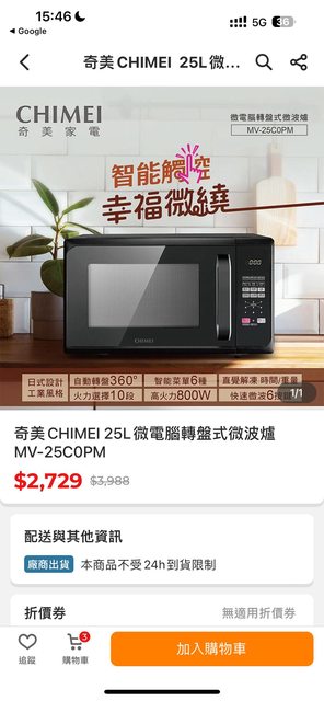 奇美CHIMEI 25L微電腦轉盤式微波爐 MV-25C0PM 預售2200 自取2000