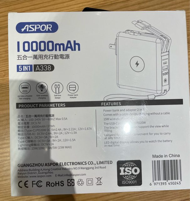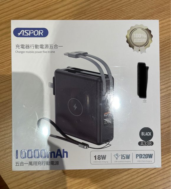 7.aspor 10000mAh行動電源,黑色/1250/全新未拆封,公司贈品,外盒有印公司logo