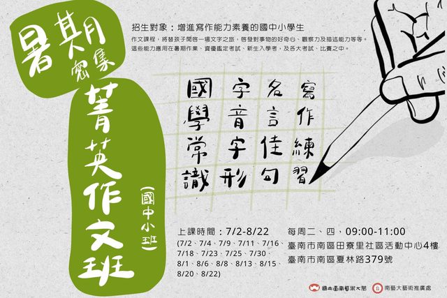標題[活動] 暑期密集菁英作文班(國中及國小班)