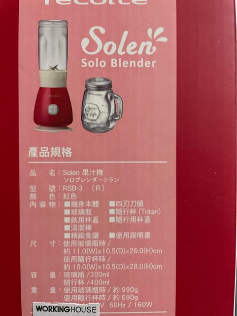 全新 日本Recolte麗克特 Solo Blender Solen 復古果汁機 蘋果紅