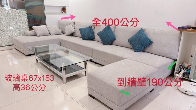 沙發尺寸:400公分x190公分,高38公分