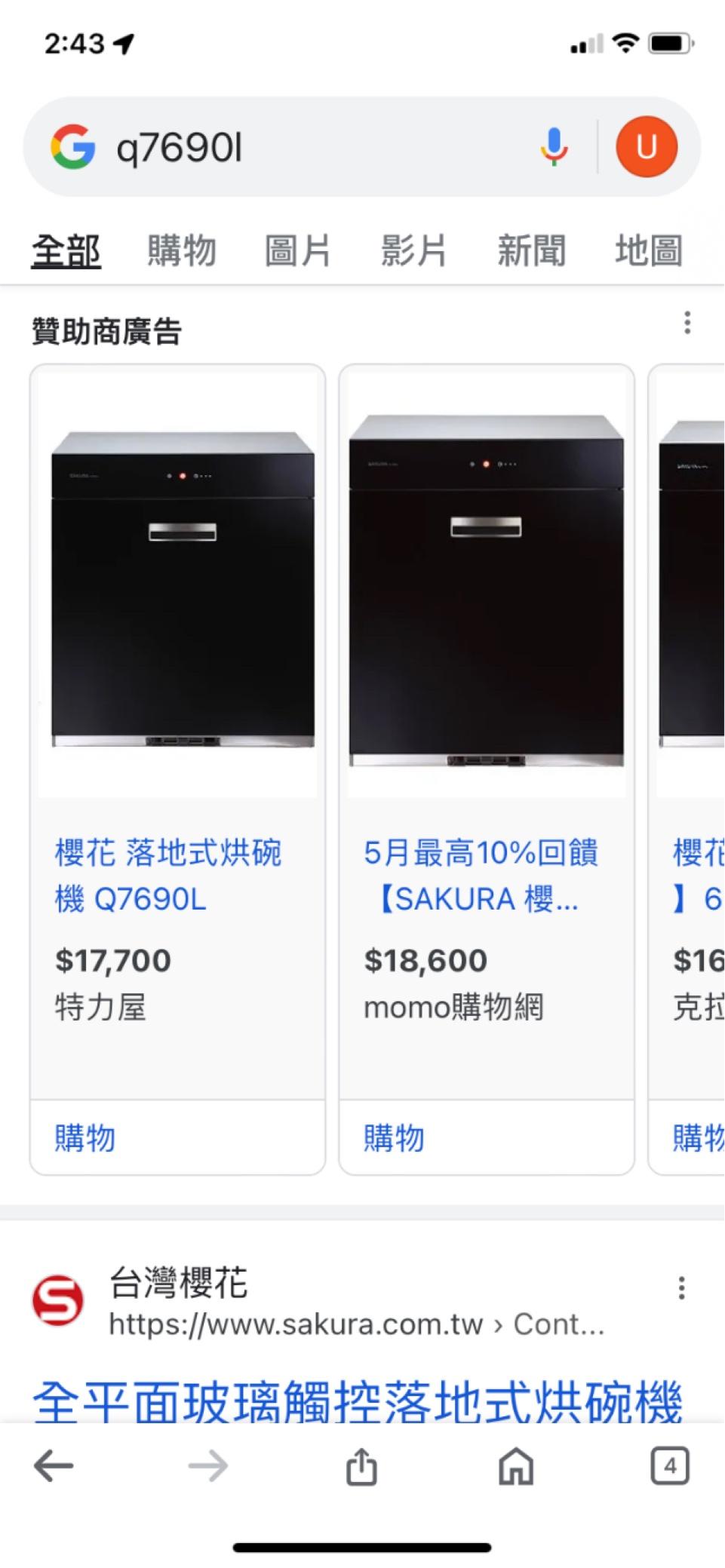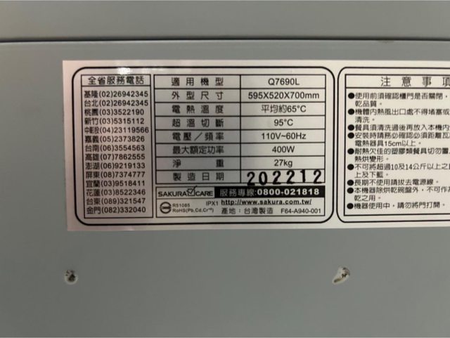 交易物品:櫻花牌烘碗機