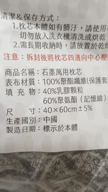 1.石墨萬用枕芯2入 400元