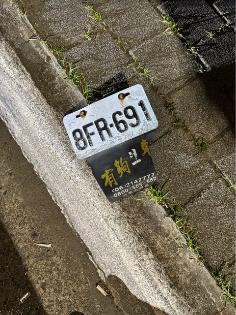 看到一個掉落的機車車牌跟擋泥板