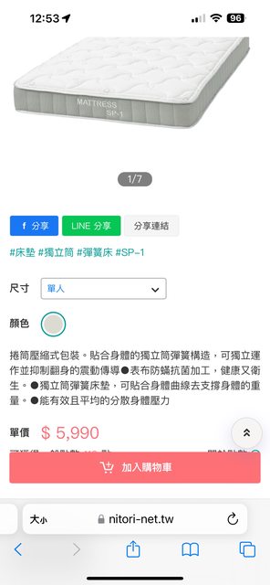 交易類別:出售 宜得利單人床墊