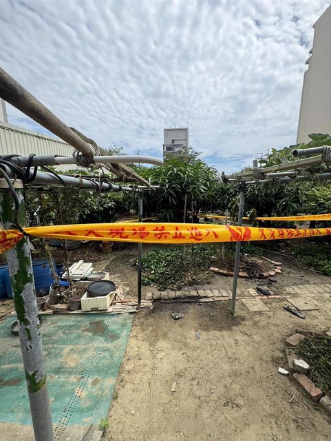 警方將林男著火的地方拉起封鎖線。(民眾提供/寶智華台