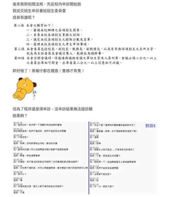 推 jiern: 如果真有黑箱 校方連談都不會談 那會有這麼多對話供截圖 05/31 06:39