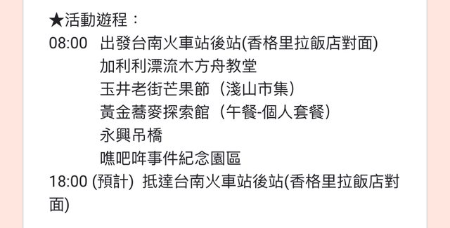因6/30臨時有事可能無法參加,故轉讓2個名額給有興趣的版友前往,旅遊行程如圖,轉