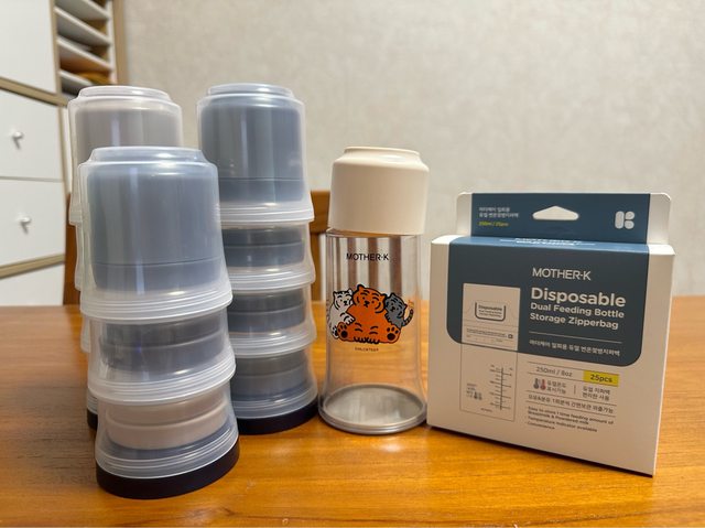 Mother-K拋棄式奶瓶x1、奶嘴收納盒x11層、奶嘴環x11、全新奶瓶袋x25