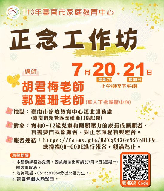 113年「正念工作坊」即日起開放報名