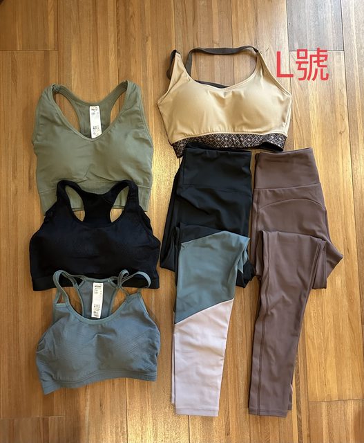 1.二手瑜珈運動衣物:只有右上角是L號,其它都是XL。