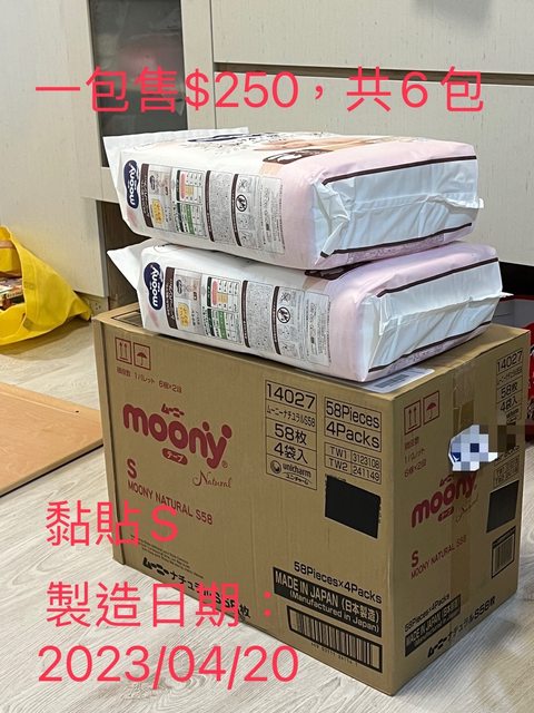 1. Moony s號黏貼型尿布/ 1包$250,有4包
