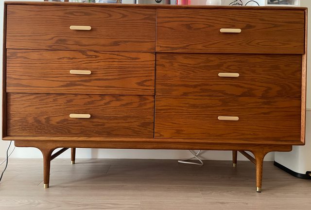 材質為美國紅橡木,111年購入,抽屜全關時要拉出來需比較用力(猜測是因為抽屜間隔