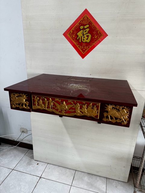 以前拿來供奉祖先,現在搬家買新的供桌,所以贈送。