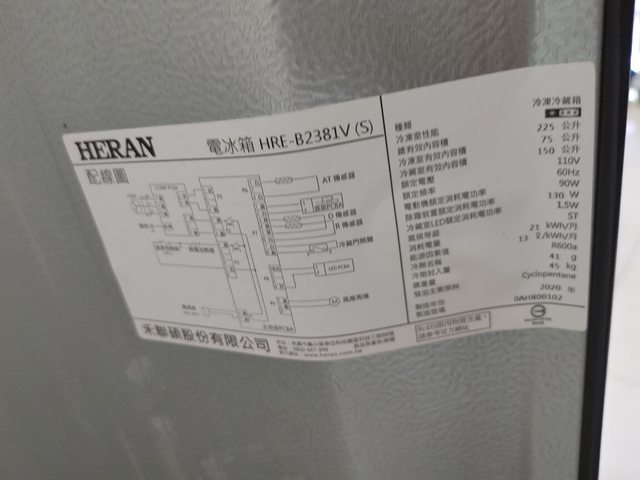 標題[交易] 禾聯 HERAN 225L 1級變頻電冰箱