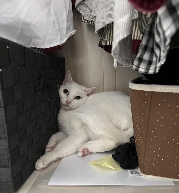 附上貓貓躲貓貓照,拍照三秒後就飛速躲到衣櫃上了OTZ