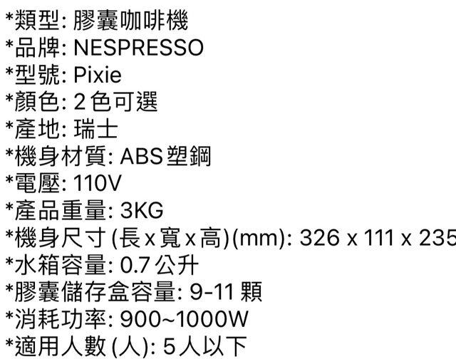 Nespresso Pixie (產地:瑞士)