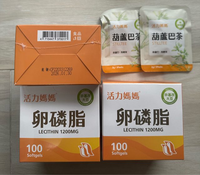 2.活力媽媽卵磷脂100顆/金額1000/今年五月官網購入,全新未拆封,有效期限2026/01/3