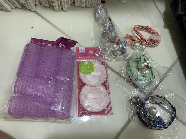 2.全新髮飾/粉撲/髮捲(拆開來看所以包裝有破但未使用)