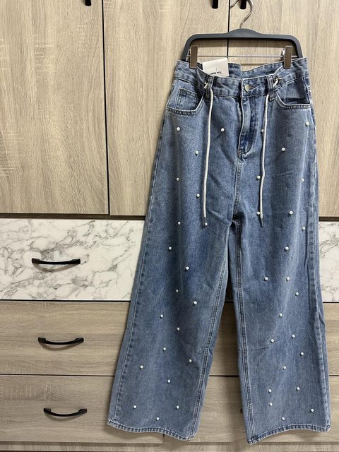 1. 全新珍珠綁帶造型寬褲 XL $200