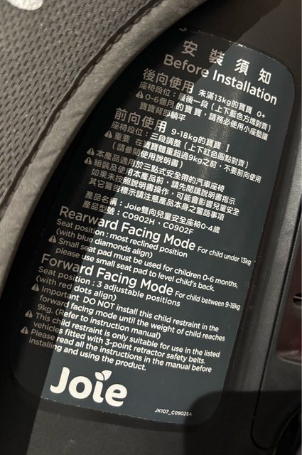 二手 joie 0-4歲雙向汽座 (安全帶固定)