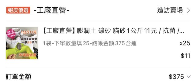 3、2022年購買沒拆過的貓砂25公斤,100元
